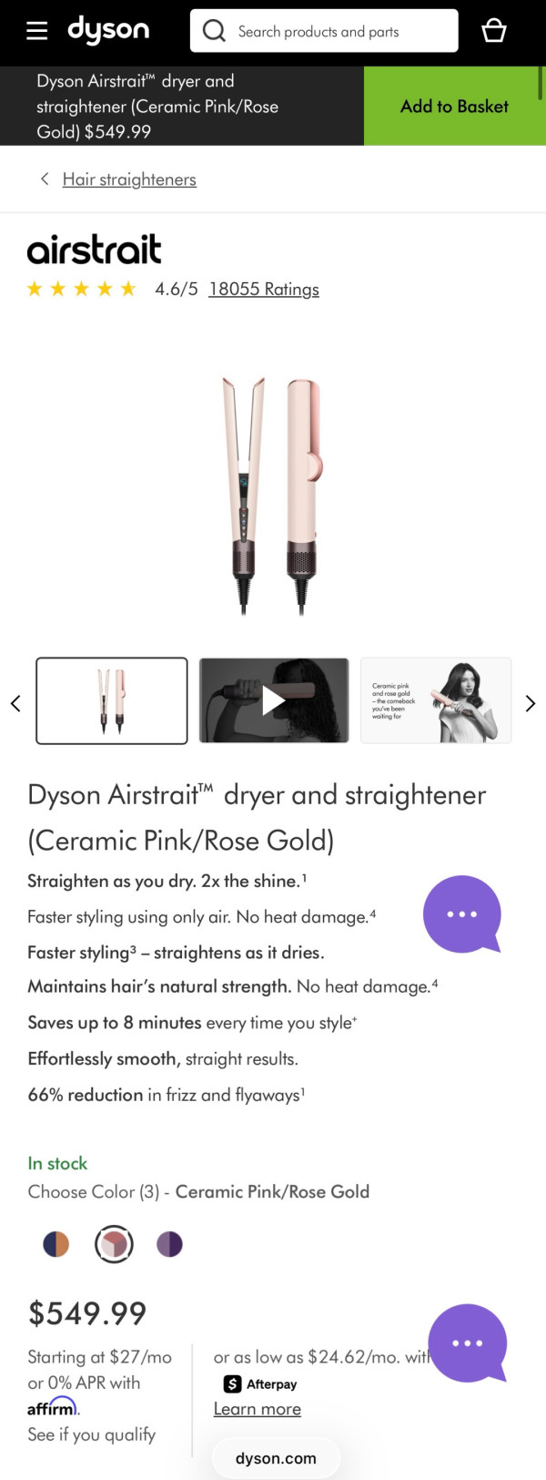 안녕하세요 다이슨 에어스트레이트 $320에 판매합니당! (Dyson Airstrait™ dryer and straightener: Color Ceramic Pink/Rose Gold) 관심 있으시면 문자주세요! :) 번호: 703-618-5624