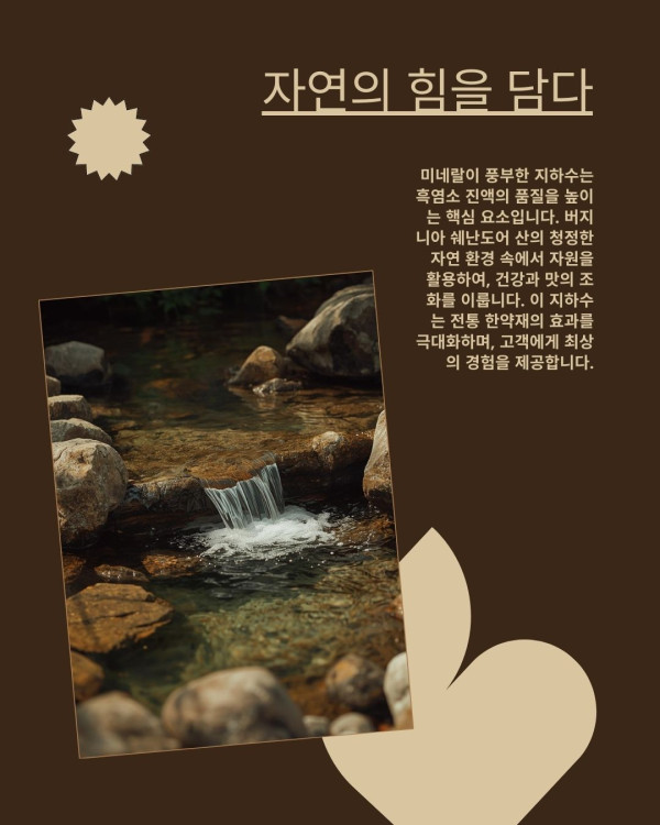 버지니아 쉐난도어 산의 기운과 물로 정성스럽게 내린 한 잔의 진액에 담은 자연의 힘