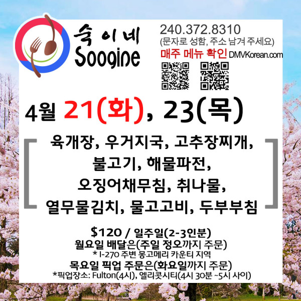 [숙이네 반찬] 4월 21일(화) / 23일(목) 메뉴입니다