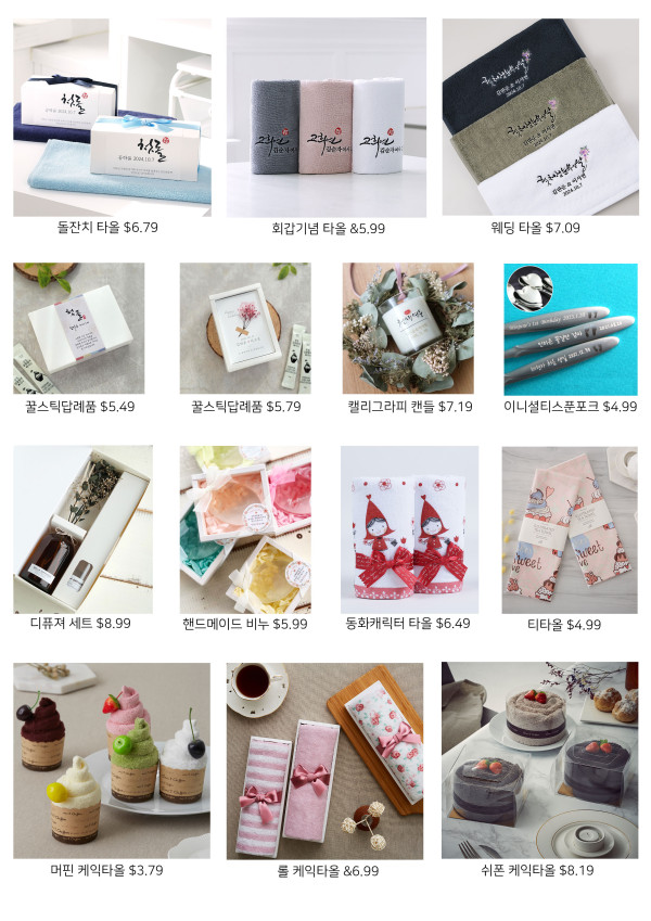 VA 돌,회갑,웨딩,교회행사 한국산 답례품 타올 등 판매