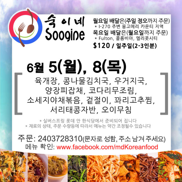 MD [숙이네 반찬] 6월 5일(월) / 8일(목) 메뉴 입니다