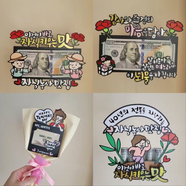 꽃풍선(용돈을 넣을수 있는 옵션도 있어요), 용돈토퍼,스승의날 기프트카드 외 예쁜제품을 준비하였습니다 ???? (수량이 한정되어 조기마감될수 있습니다)