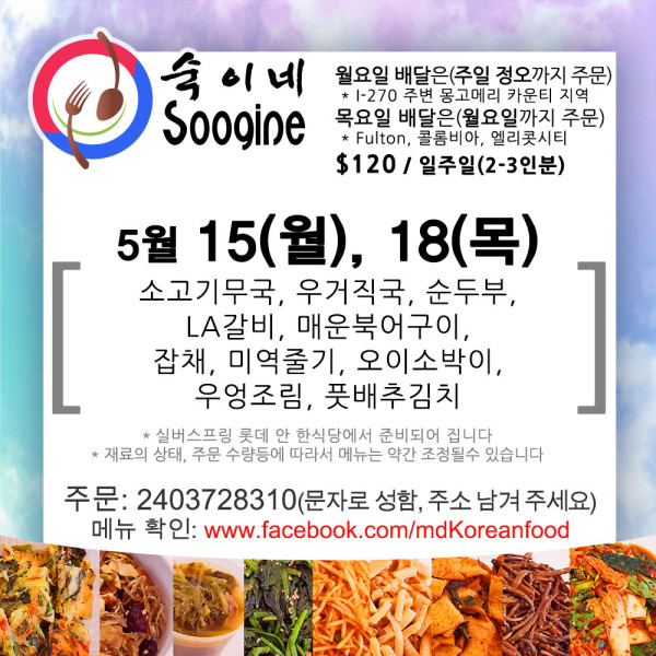 MD [숙이네 반찬] 5월 15일(월) / 18일(목) 메뉴 입니다