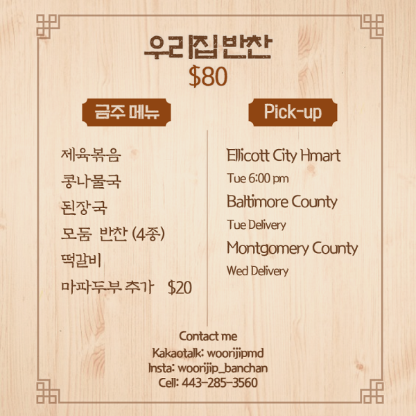 MD [우리집 반찬] 5월 30,31일차 메뉴 페이지 정보 작성자 씬나 댓글 0건 조회 3,709회 작성일 23-05-25 23:27 본문 배달 문의는 카톡 woorijipmd, 443-285-3560 으로 부탁 드립니다. 감사합니다 목록 이전글[숙이네 반찬] 5월 30일(화) / 6월 1일(목) 메뉴 입니다 23.05.26 다음글[숙이네 반찬] 5월 22일(월) / 25일(목) 메뉴 입니다 23.05.19 댓글목록 댓글목록 등록된 댓글이 없습니다.