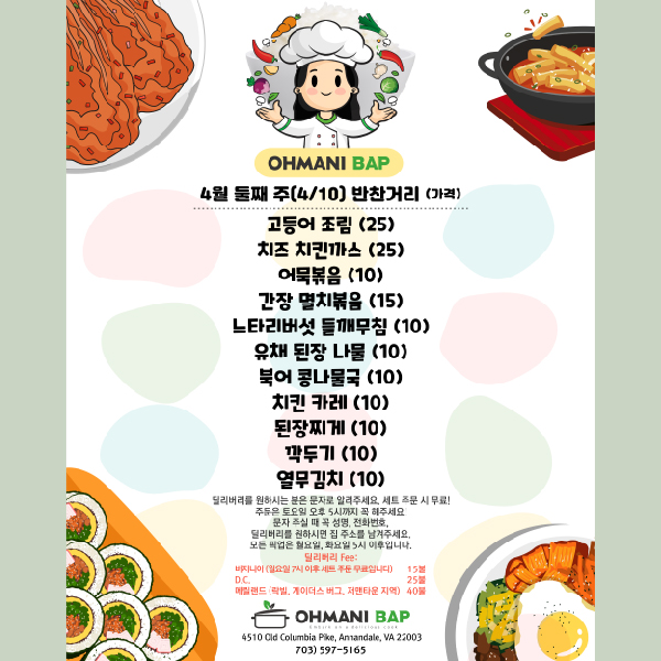 VA [비지니스] 오마니밥 4월 둘째 주(4/10) 반찬 메뉴