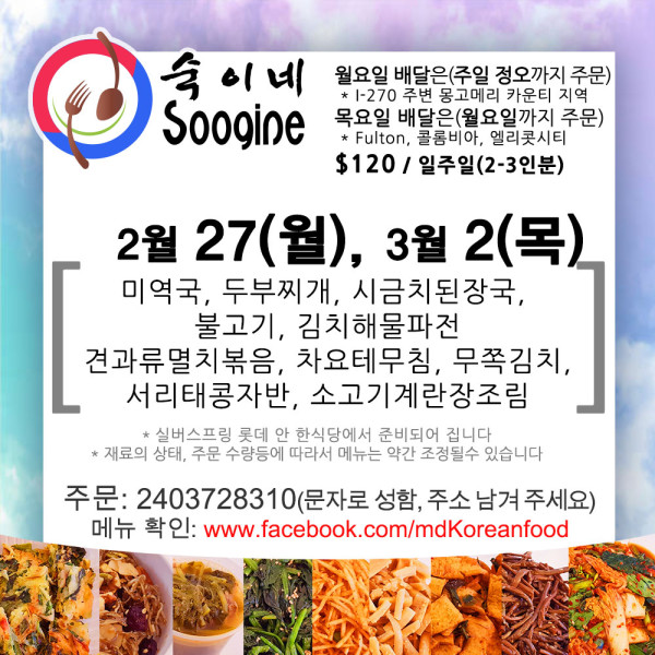 MD [숙이네 반찬] 2월 27일(월) / 3월 2일(목) 메뉴 입니다