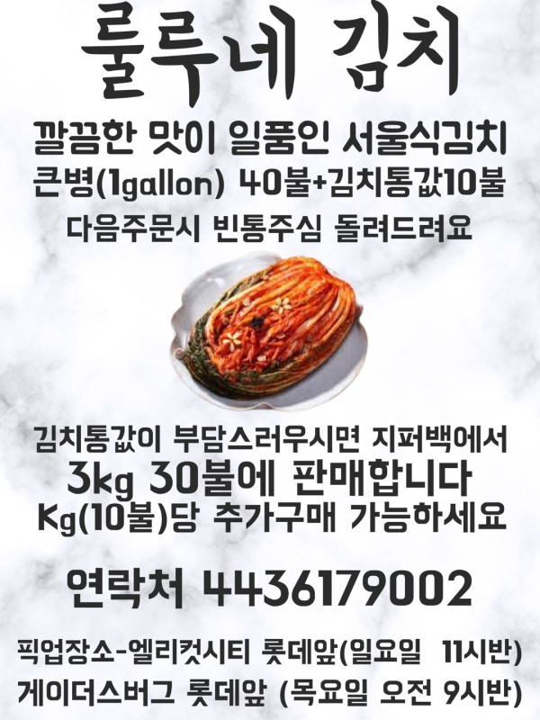 MD [개인] 서울식 김치판매 페이지 정보 작성자 룰루네 댓글 0건 조회 9,434회 작성일 22-04-25 08:03 본문 서울식으로 담근 포기 김치판매합니다~떡갈비도 판매중입니다~ 관련링크 https://open.kakao.com/o/sTHOx8Md 4814회 연결 목록 이전글[숙이네 반찬] 5월 2(월), 4일(수) 배달음식 메뉴입니다 22.04.28 다음글[숙이네 반찬] 4월 25(월), 27일(수) 배달음식 메뉴입니다 22.04.21 댓글목록 댓글목록 등록된 댓글이 없습니다.
