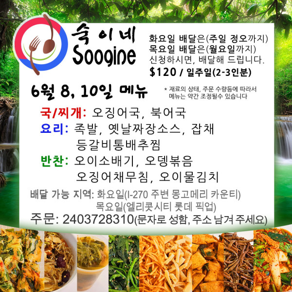 MD [숙이네 반찬] 6월 8, 10일 배달음식 메뉴입니다