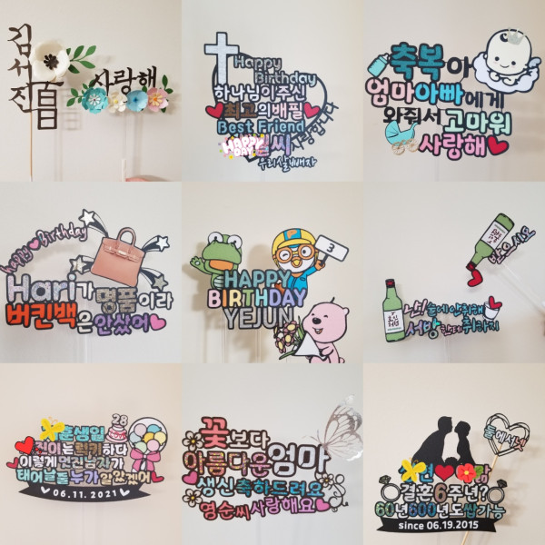 해피트리에서는 생일,용돈등 기념일 토퍼(케이크 위에 올리는 제품) 및 풍선(스탠드20인치, 24인치 헬륨, 꽃풍선, 웨딩풍선 등)을 만들어 드리고 있습니다.