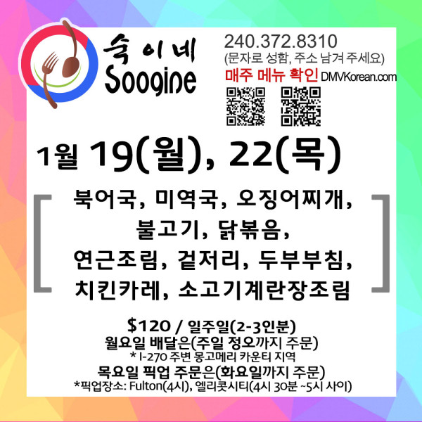 MD [숙이네 반찬] 1월 19일(월) / 22일(목) 메뉴입니다